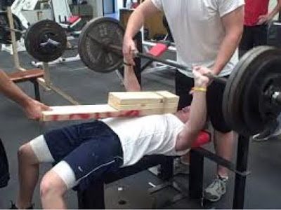 No slacking off on your presses while this baby is on your chest. If the bar does not touch the board, then you can’t count that as a rep.