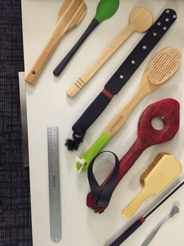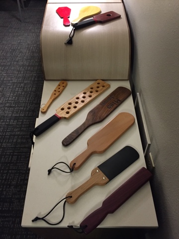 Each time I travel I take different implements with me, typically based on the interests of the spanko’s I’m seeing as well as my own personal preferences. Here’s some of what I took with me on my Portland trip.