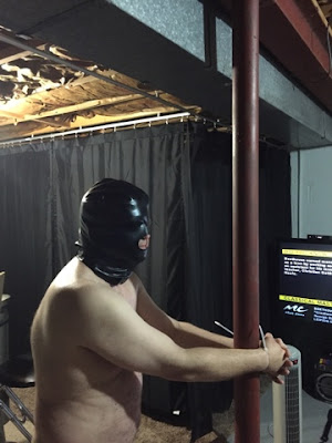Bound him to the pole, then paddled his ass thoroughly!